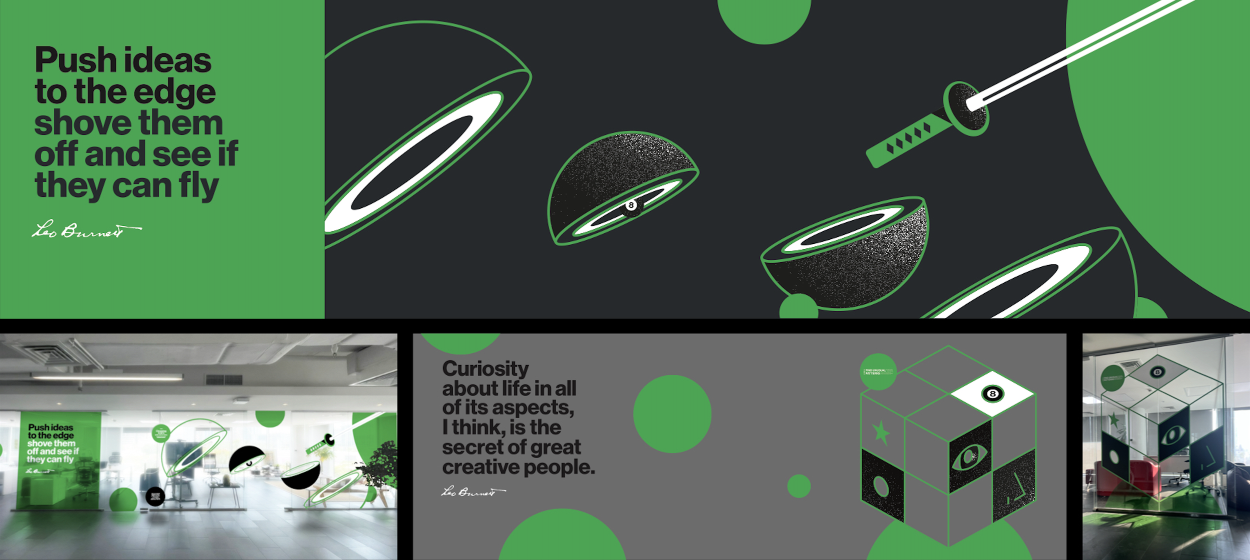 An internal brand environment for Leo Burnett Dubai that translates creative thinking into a spatial system embedded across the office.