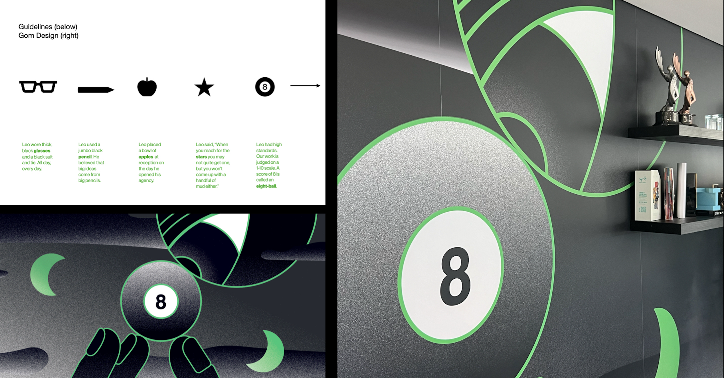 The result is a spatial brand system that reinforces creative confidence and keeps the agency’s thinking visible, human, and present in everyday work.